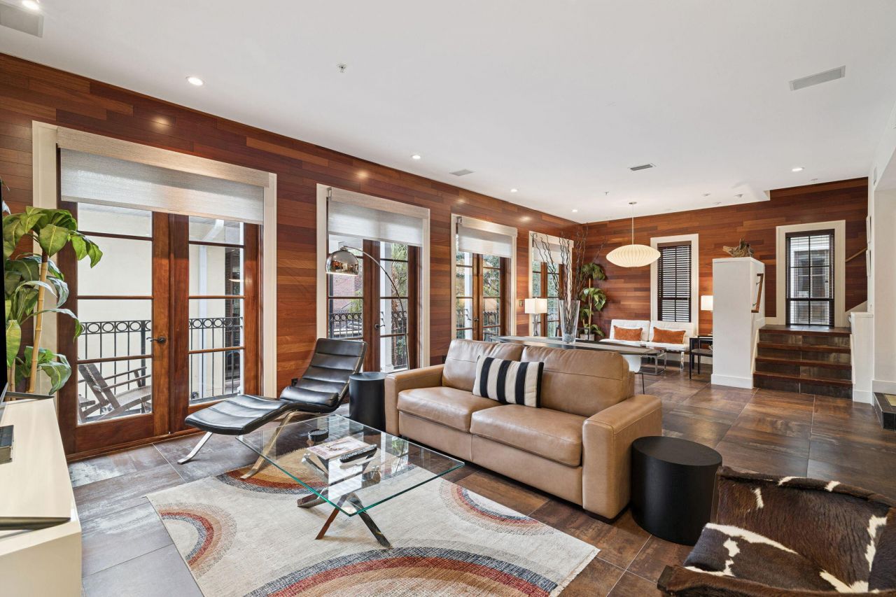 Experience an elevated blend of coastal living and urban sophistication in this distinctive two-story residence in Fishermans Village, overlooking Tupelo Courtyard. Designed with an upscale, industrial-inspired aesthetic, the interior features rich wood walls, hardwood floors, a warm neutral palette, and sleek accents that create a modern yet inviting atmosphere ideally positioned in the heart of Baytowne Wharf. The open concept first floor offers a seamless flow between the living, dining, and kitchen areas, highlighted by stainless steel appliances, a sleek cooktop, and a Thermador oven and microwave combo. A striking backsplash adds a design-forward touch, while large French doors open to a private balcony overlooking the lush courtyard and tranquil fountain, your front-row seat to peaceful mornings with coffee or to the energy of community events and live music nights just steps away. A convenient half bath with a water closet and thoughtful storage completes the first level.Upstairs, two generously sized bedrooms each provide a private full bath, creating a comfortable retreat for both owners and guests. A conveniently located stackable washer and dryer enhances functionality and everyday ease.Set among a beautifully landscaped courtyard and fountain, this unique residence captures a quiet, tucked-away feel while being surrounded by every amenity Baytowne Wharf is known for. Enjoy access to a sparkling swimming pool, fitness center, greenspace featuring concerts and movie nights, and the newly added Hotel Effie, all within a short walk.Baytowne Wharf is a lively waterfront village inside Sandestin Golf and Beach Resort offering a delightful mix of boutiques, art galleries, and specialty shops alongside award-winning restaurants, casual eateries, and vibrant nightlife. By day you can stroll charming cobblestone streets, browse inviting boutiques, grab a bite, or enjoy family-friendly attractions like zip-lining, a carousel, arcades, and marina-side fun. As the sun sets the atmosphere transforms with live music, seasonal festivals, and nightlife events filling the air along the bay. Baytowne Wharf delivers a full resort-style lifestyle where shopping, dining, entertainment, and coastal charm come together, whether you're on vacation or call it home.Sandestin residents enjoy abundant amenities, including 5-Star golf courses, tennis and pickleball, and access to stunning white sand beaches and sparkling pools. Pedestrian, bike, and golf cart paths make exploring the resort effortless, and the nearby deep-water 210-slip full-service marina adds one of Sandestin's most distinctive lifestyle advantages. The ever-growing Grand Boulevard Town Center, featuring great restaurants, retail shopping, Starbucks, a movie theater, and Publix Grocery, is a short golf-cart ride away.Perfect as a high-performing rental or personal getaway, this residence offers a rare combination of style, convenience, and location. If you are looking for something truly unique that delivers an upscale city vibe at the beach, this exceptional property is one you will not want to miss.