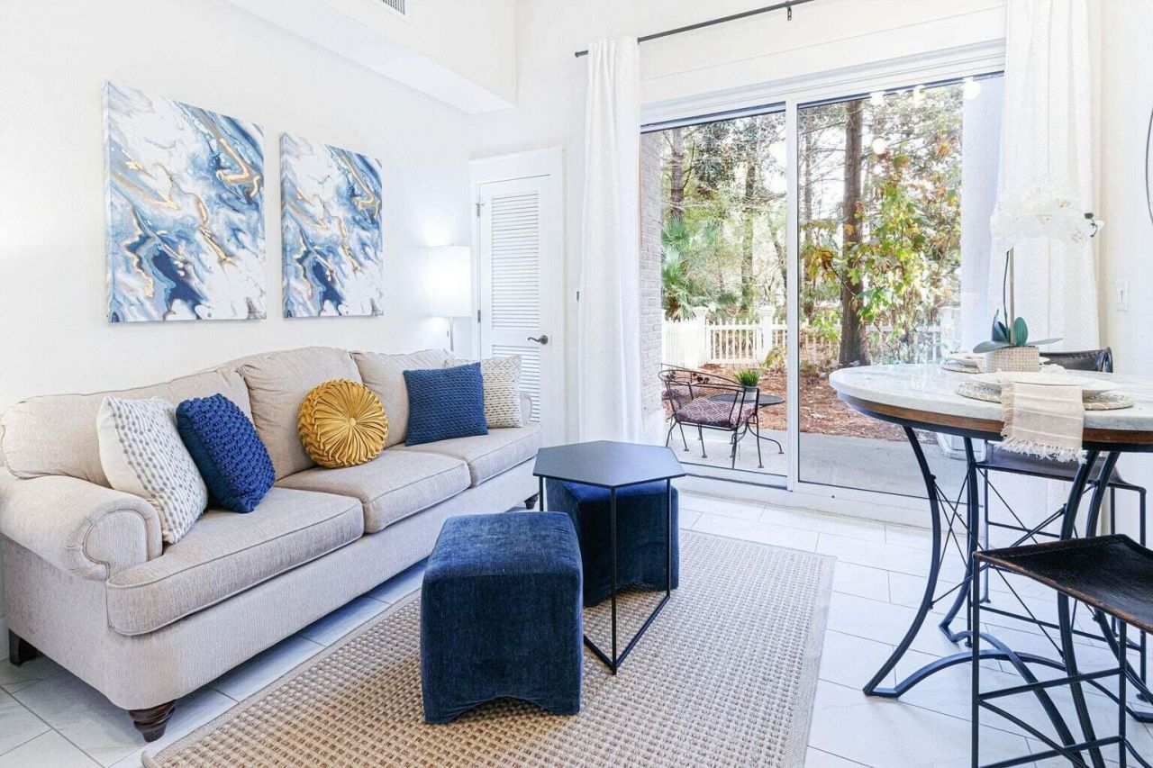 A GREAT NEW PRICE!! Resort Life in this beautiful Studio in Baytowne Wharf! Beautifully updated first-floor studio with a charming white picket-fenced backyard--light, bright, and rental-ready! Features 10-ft ceilings, new A/C (2023), and all-new furnishings, décor, bedding, lighting, drapes, and refreshed tile (2022). Just steps from The Village of Baytowne Wharf with dining, shopping, and live music. King bed and queen sleeper sofa make it perfect for a small family. Enjoy nearby tennis, beach access via shuttle, and Sandestin's resort amenities--7 miles of beaches, 4 golf courses, 15 tennis courts, a marina, fitness center, spa, and more! Strong rental history and priced to sell--a rare opportunity to own in Sandestin!